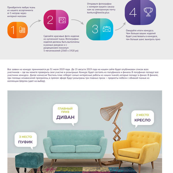 С 1 февраля 2019 года компания «Текстиль плюс» запускает творческий конкурс «Быть дизайнером» среди покупателей интернет магазина.